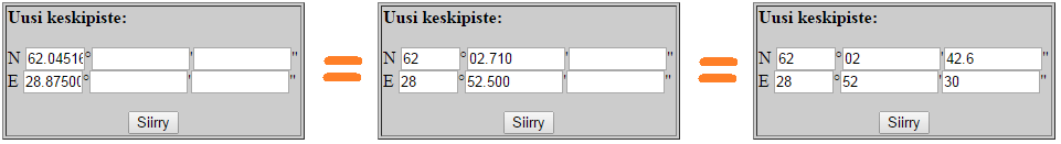 Voit kirjoittaa koordinaatit useissa eri muodoissa, koska desimaaleja voi kirjoittaa niin asteisiin, minuutteihin kuin sekunteihinkin.